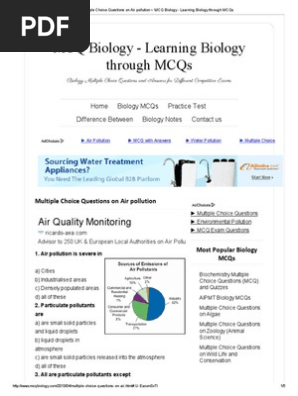 Multiple Choice Questions On Air Pollution Mcq Biology Learning Biology Through Mcqs Particulates Air Pollution