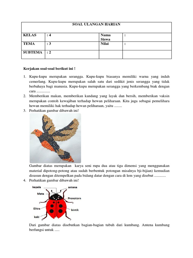 Soal UAS 1 Penilaian Akhir Semester Kelas 4 Tema 3 Kurikulum 2013